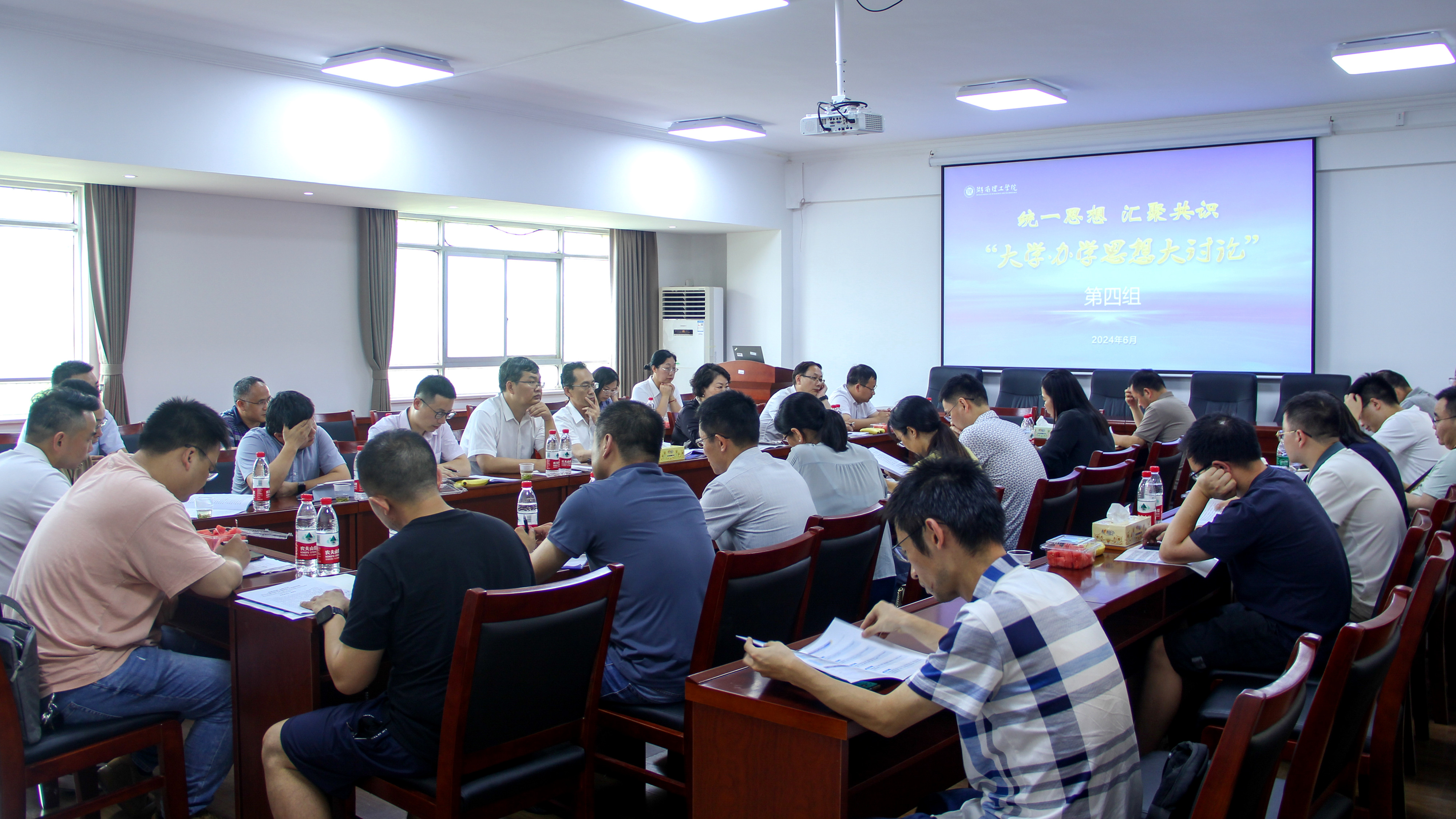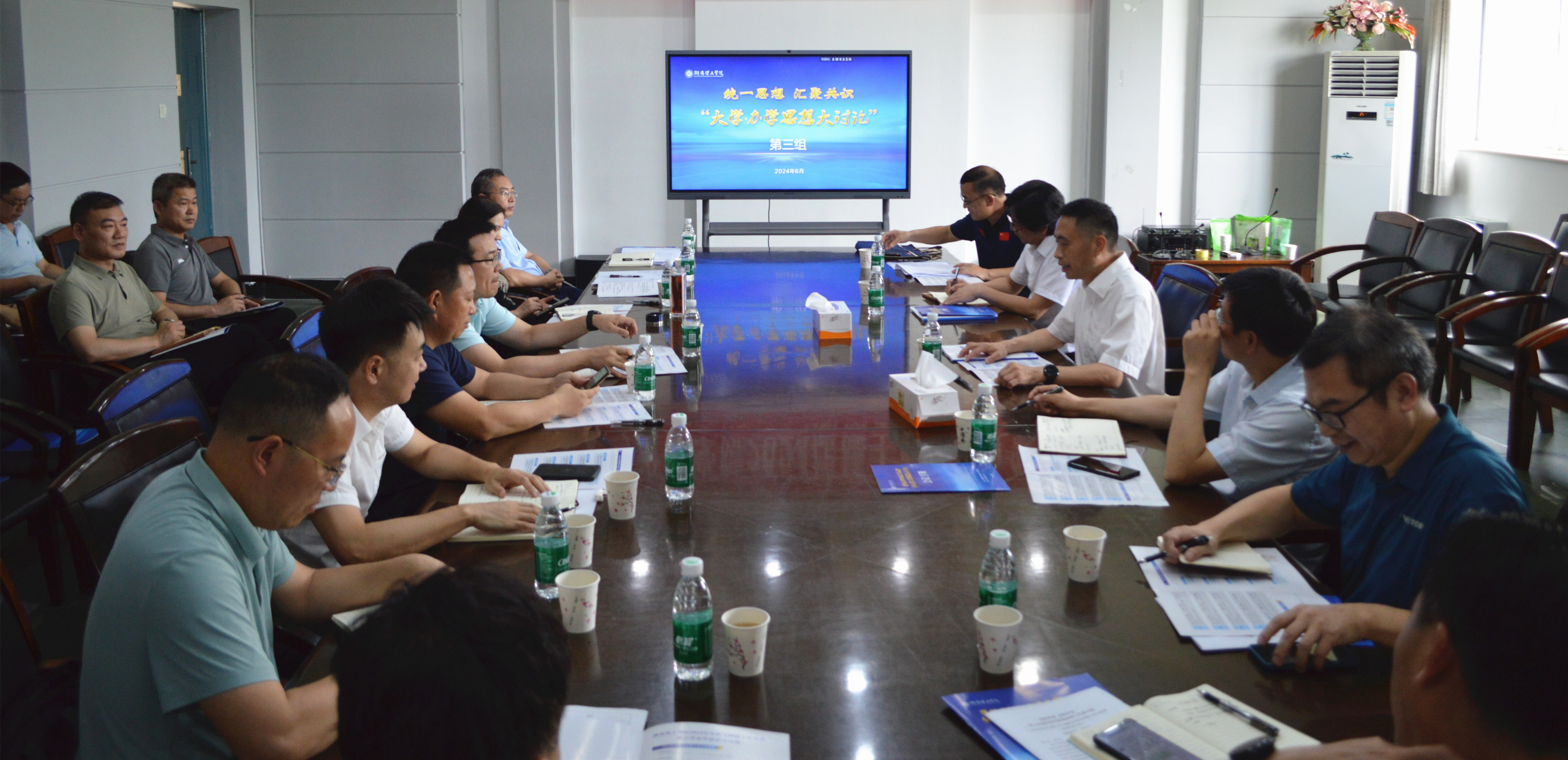 在下午举行的骨干人员“大学办学思想大讨论”中,校领导分成七组,与学院领导班子成员、系主任、学科带头人、学科骨干和职能部门负责人一道参加了讨论。据悉,学校还将在6月18日组织全校教师以职能部门和教研室为单位开展大学办学思想大讨论。